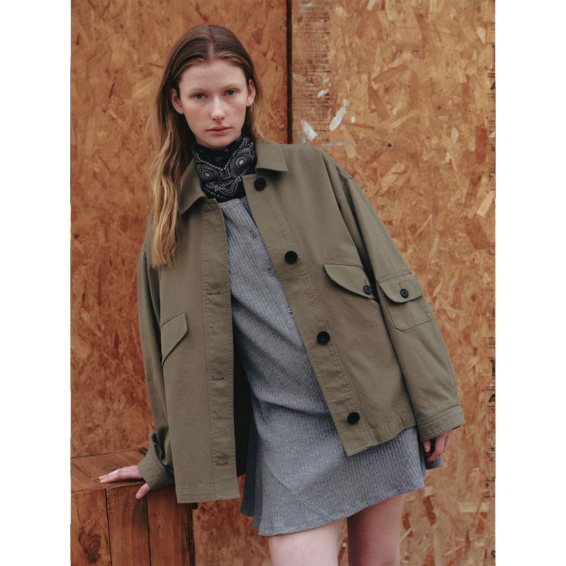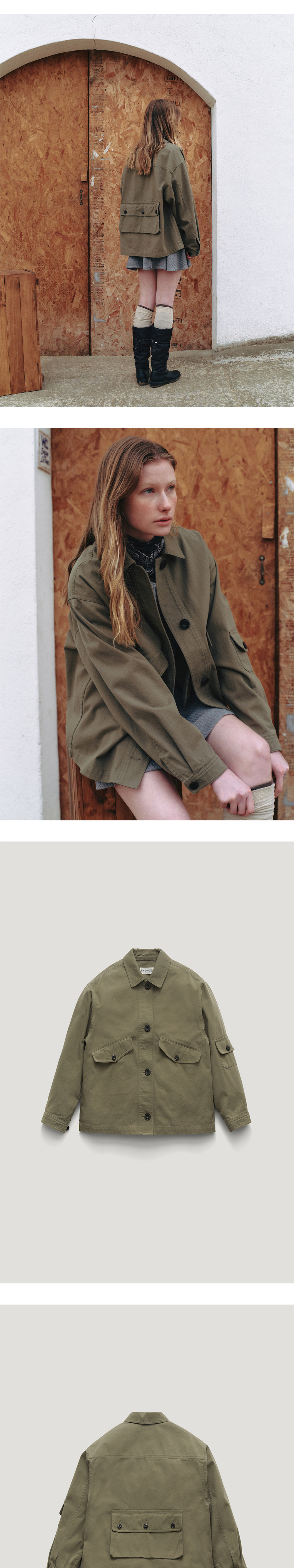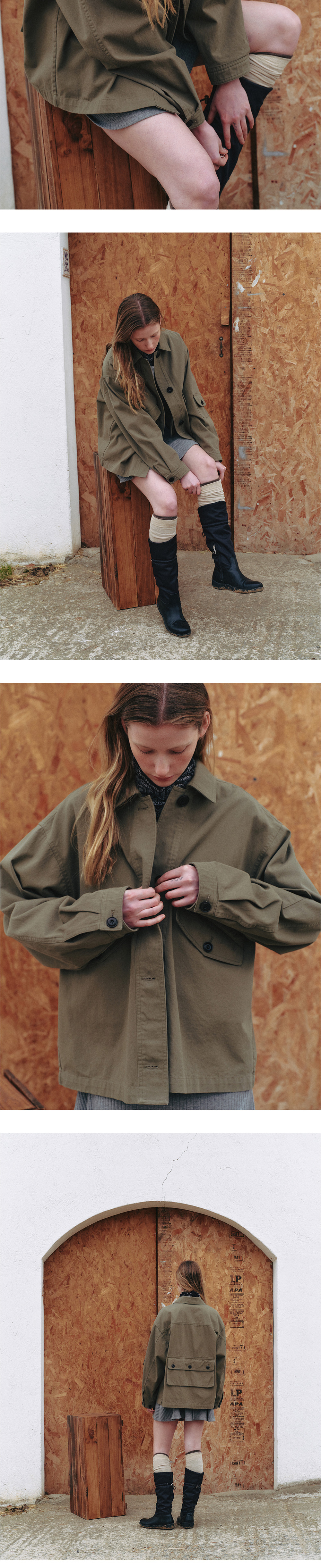오버한 실루엣의 사파리 자켓으로 클래식한 무드에 소매와 뒤중심에 포켓 디테일로 디자인에 포인트를 주었습니다. 부드러운 터치감과 빈티지함을 느낄수 있도록 가먼트 스톤워싱을 하여 완성도를 높였습니다. 야자열매에서 채집한 천연소재의 너트 단추에 로고 각인을 하여 고급스러움을 더했습니다. *너트 단추는 물에 반응하는 개체이므로 세탁시 이염 방지를 위한 단독세탁 및 자연건조 필수입니다. 드라이클리닝시 호일로 단추를 감싸주시길 권장합니다. 건조기 사용시 깨짐, 갈라짐 현상이 발생할 수 있으니 건조기 사용은 불가합니다.