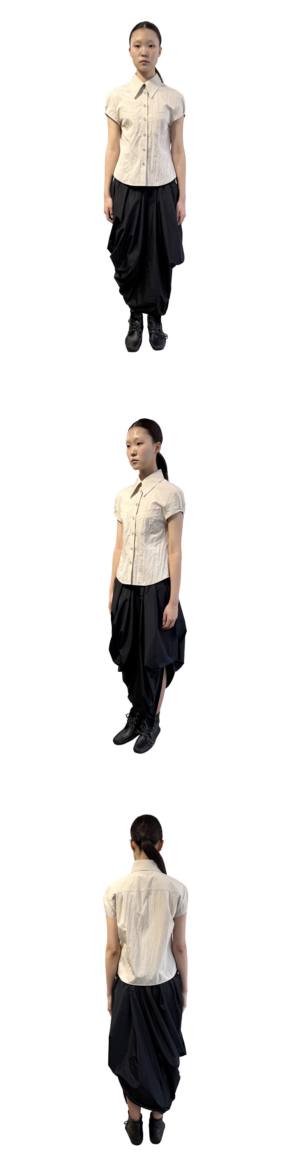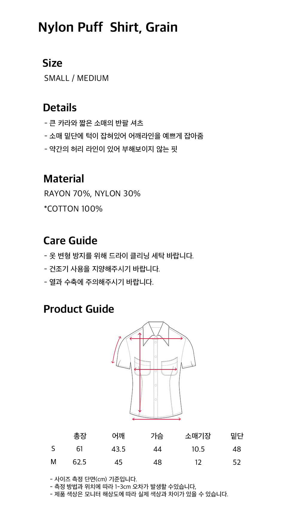 오들리워크샵 나일론 퍼프 셔츠 그레인