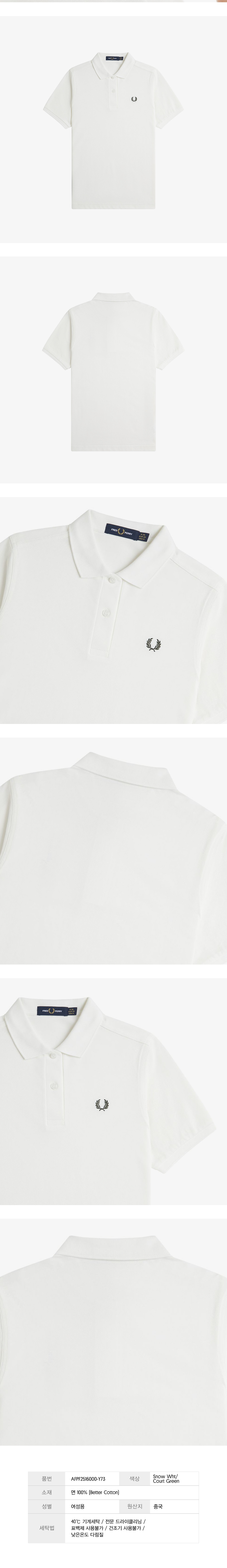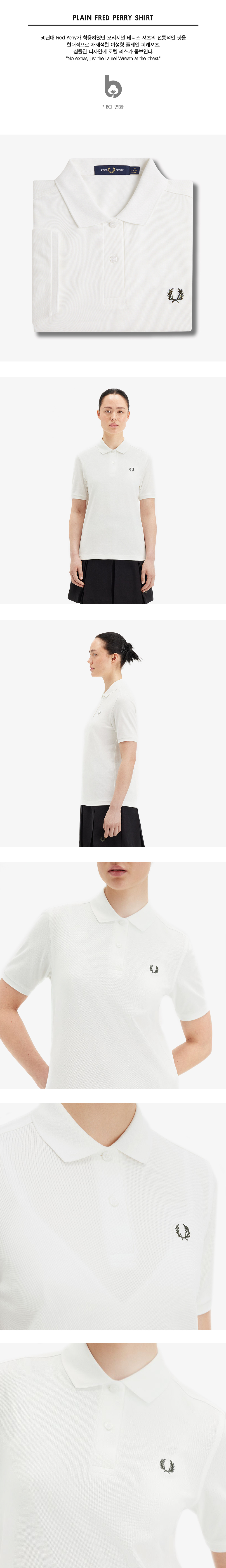 프레드페리 우먼즈 플레인 프레드페리 셔츠 스노우 화이트/코트 그린