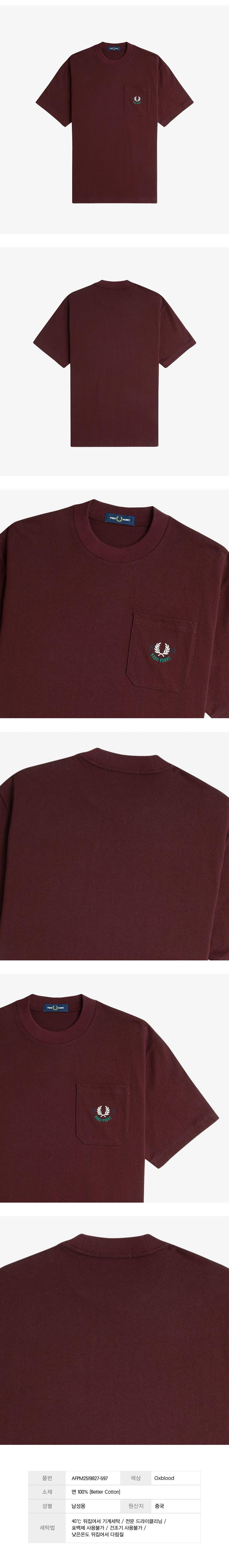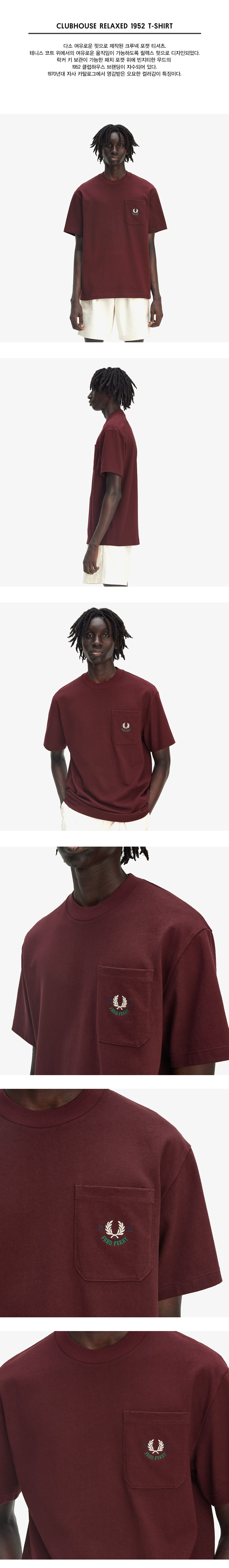 프레드페리 클럽하우스 릴렉스드 1952 티셔츠 옥스블러드