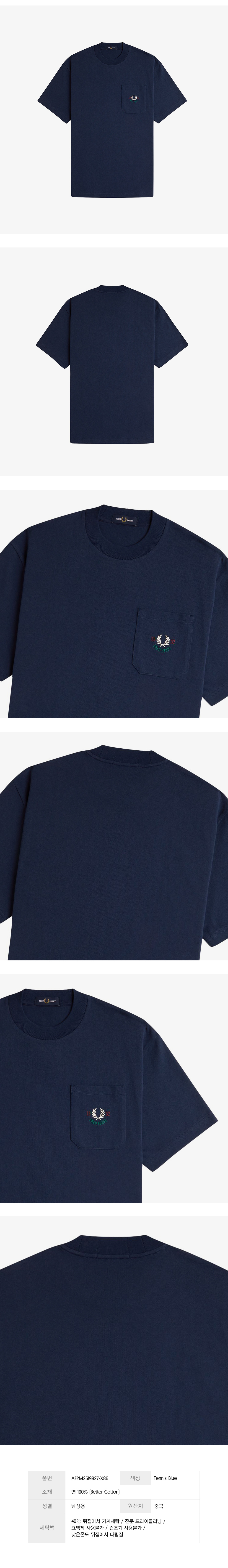 프레드페리 클럽하우스 릴렉스드 1952 티셔츠 테니스 블루