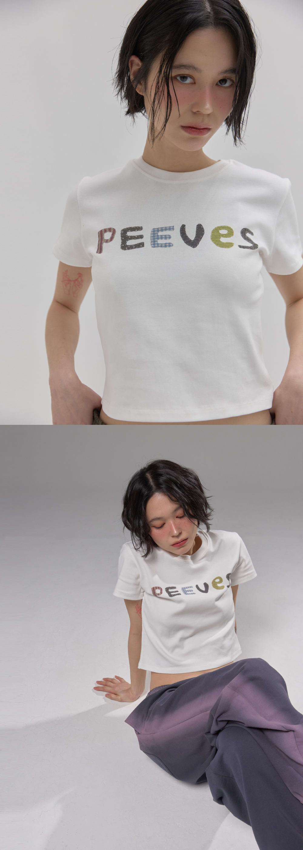 - 스캔된 원단 아플리케 로고 그래픽을 새긴 티셔츠 - 크롭한 기장감의 슬림핏 - 부드러운 터치감과 우수한 신축성의 패브릭