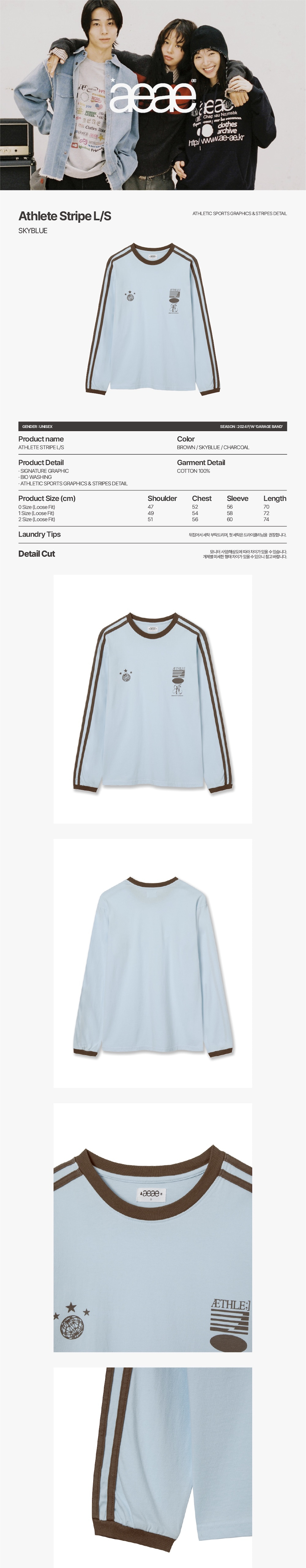 에이이에이이 애슬릿 스트라이프 롱슬리브 스카이블루
