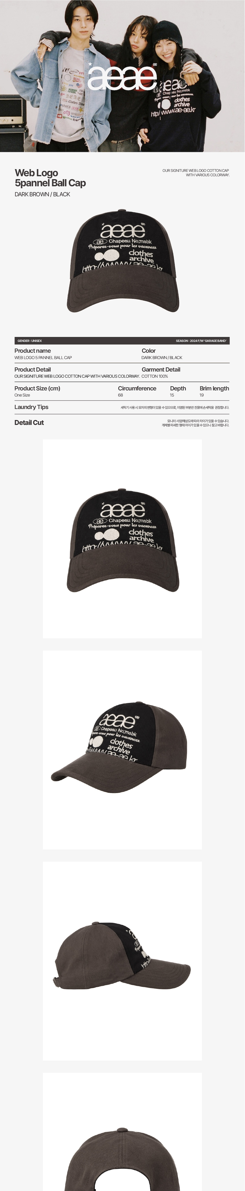 에이이에이이 웹 로고 5 패널 볼캡 다크 브라운 & 블랙