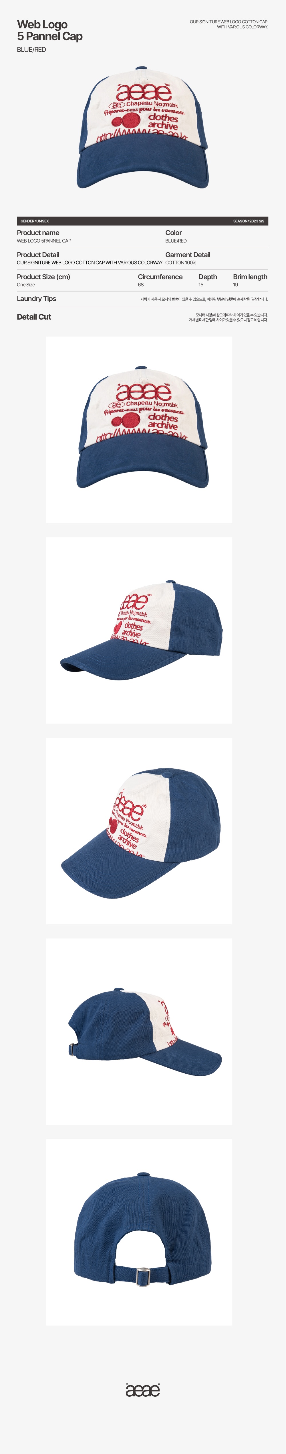 에이이에이이 웹 로고 5 패널 볼캡 블루 & 레드