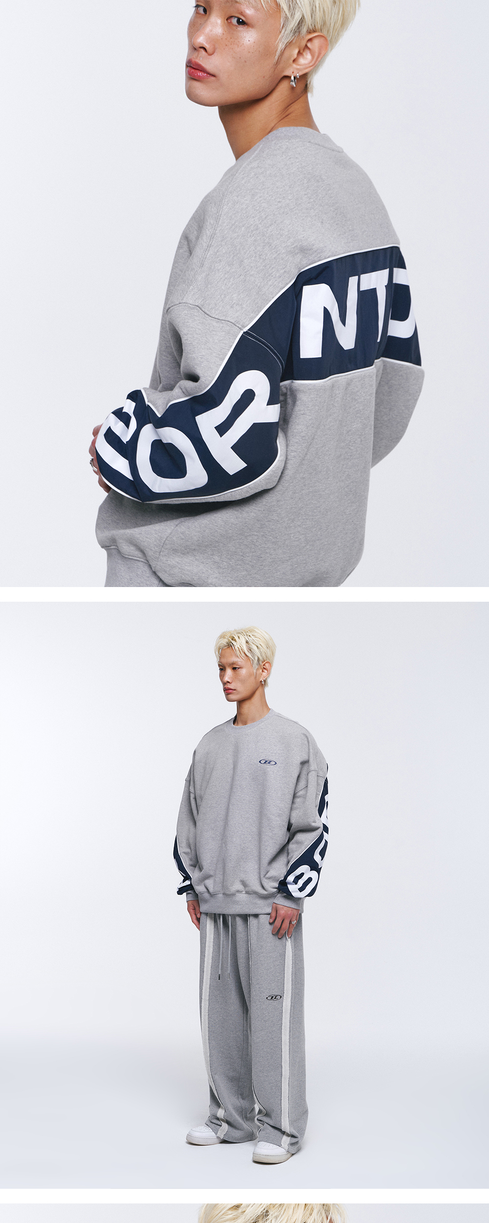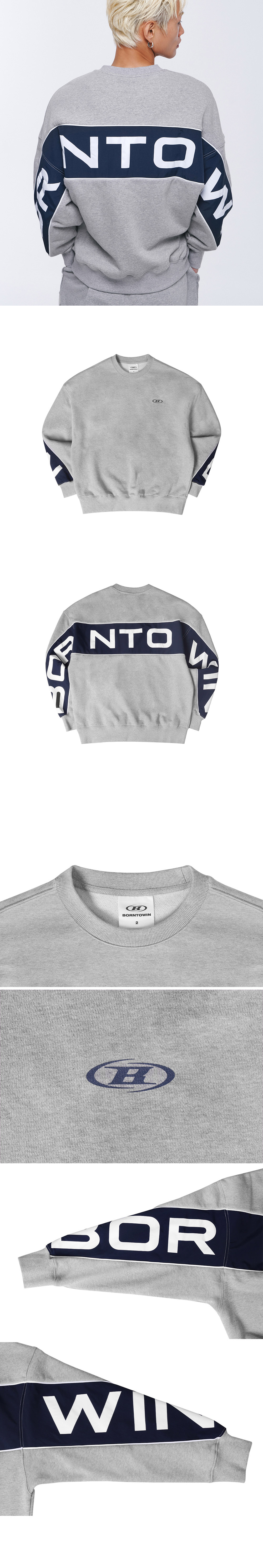 [DETAILS] * 나일론 믹스 볼드 스웻셔츠 - 탄탄한 코튼 혼방 원단 - 우븐 배색 레터링 포인트 - B 로고 포인트 - 오버 사이즈핏 Material : Cotton 60%, Polyester 40% Fitting : DS 2 Size, 178cm, 70kg