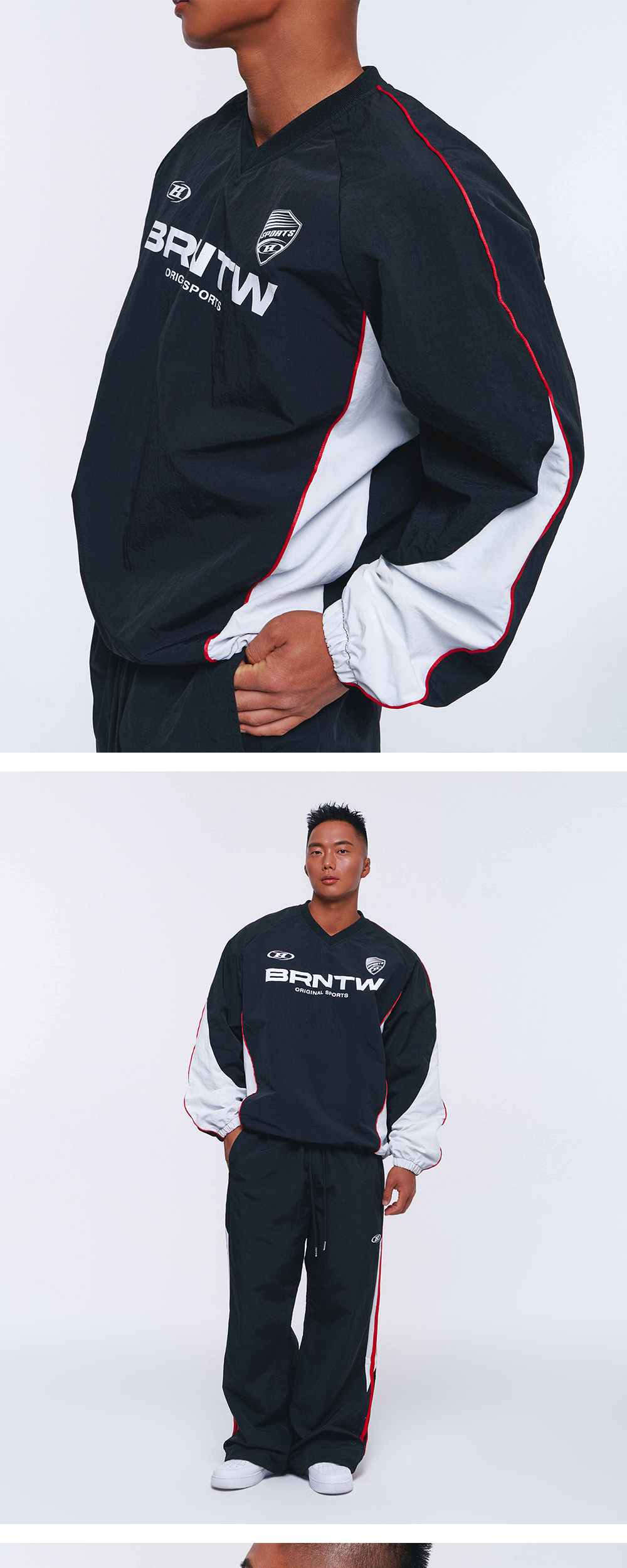 [DETAILS] * BRNTW 벤틸레이션 나일론 탑 - 방풍, 투습 기능 경량 나일론 우븐 원단 - 메쉬 안감 & 후면 벤틸레이션 - 파이핑 포인트 - 오버 사이즈핏 Material : Nylon 100% Fitting : TJ 1 Size, 172cm, 74kg / DJ 3 Size, 183cm, 88kg