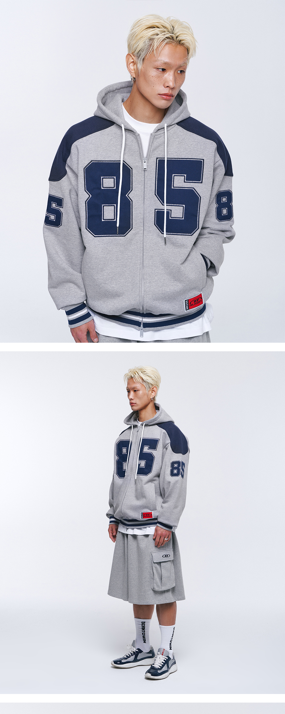 본투윈 85 아플리케 럭비 후드 집업 그레이