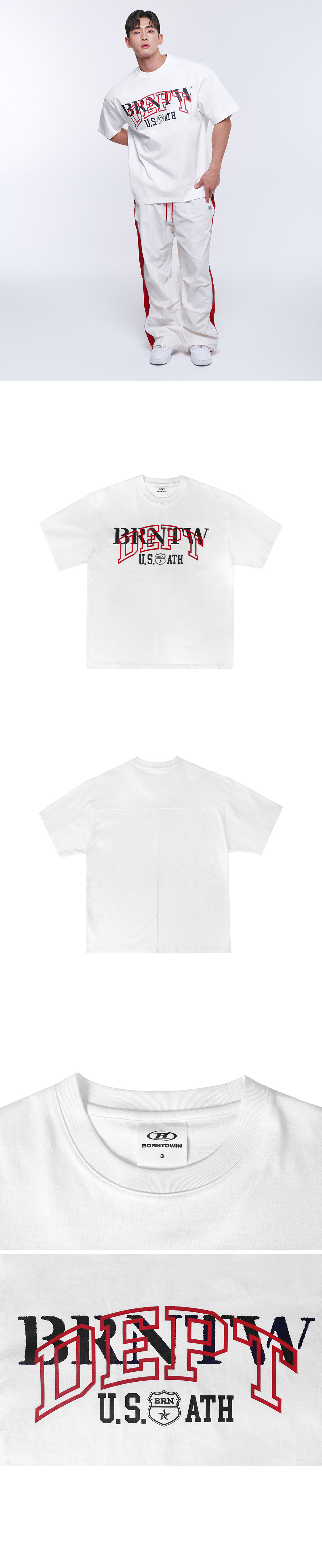 본투윈 DEPT 백 컷팅 세미 오버핏 티셔츠 화이트