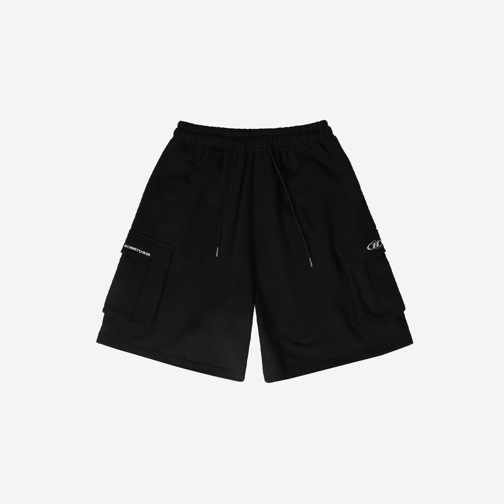 본투윈 심볼 로고 카고 버뮤다 팬츠 블랙