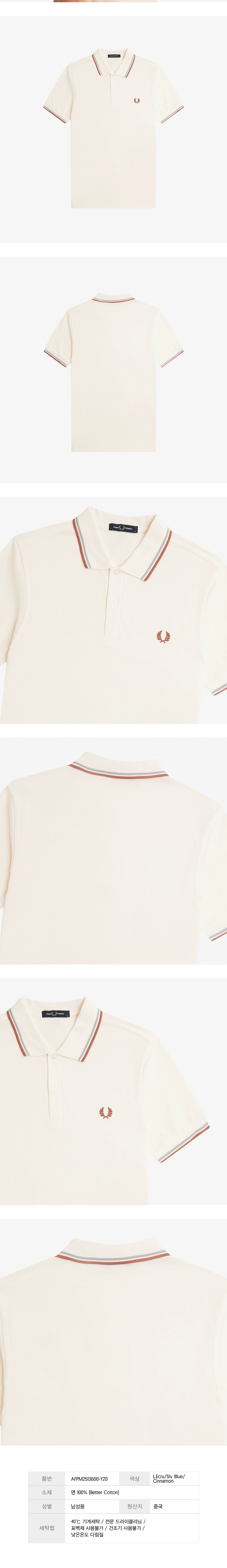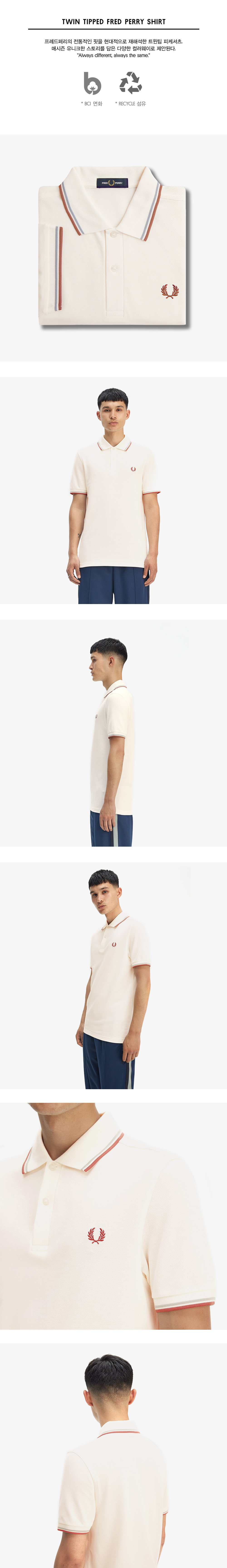 프레드페리 트윈 팁 프레드페리 셔츠 라이트에크루/실버블루/시나몬