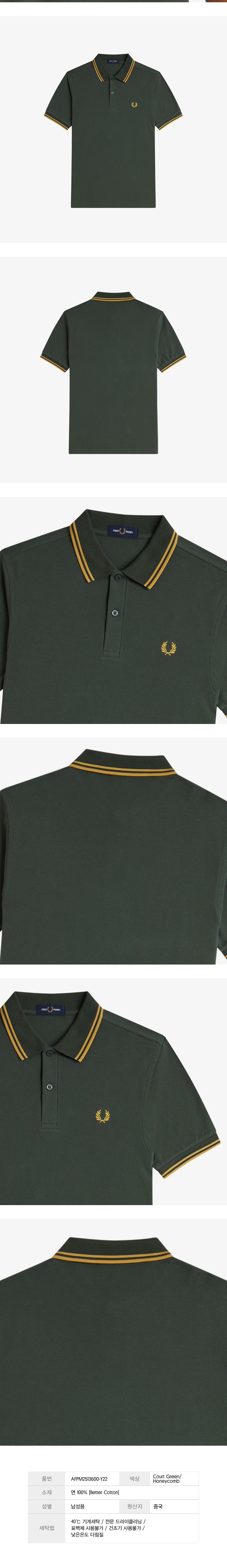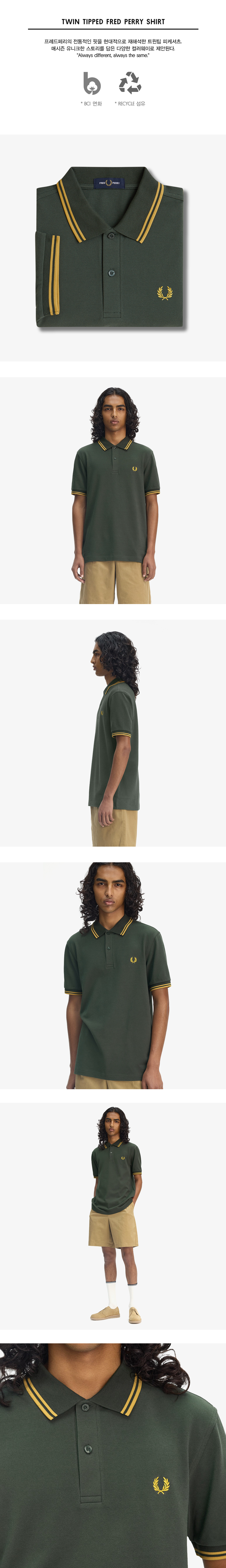 프레드페리 트윈 팁 프레드페리 셔츠 코트그린/허니콤