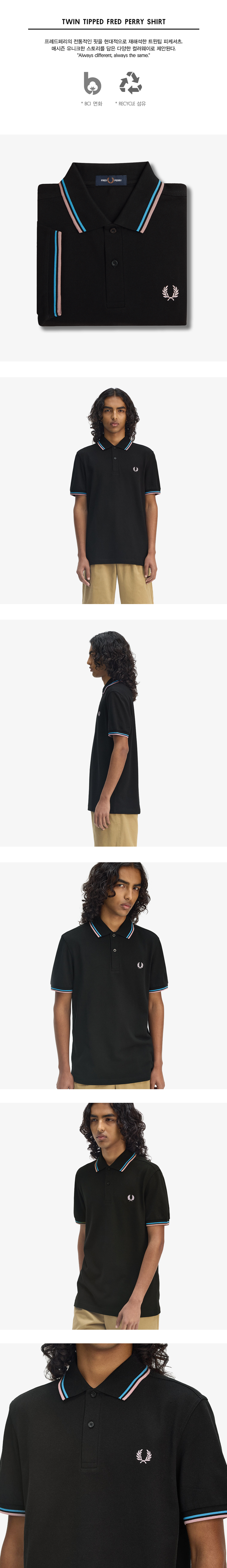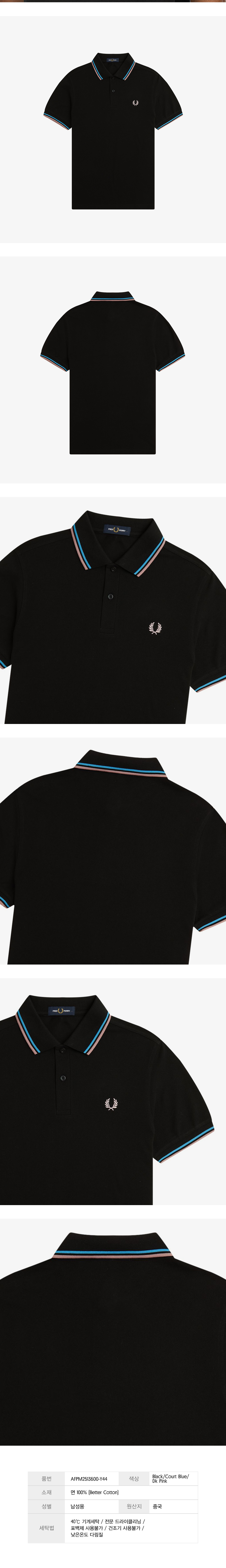 프레드페리 트윈 팁 프레드페리 셔츠 블랙/코트 블루/다크 핑크