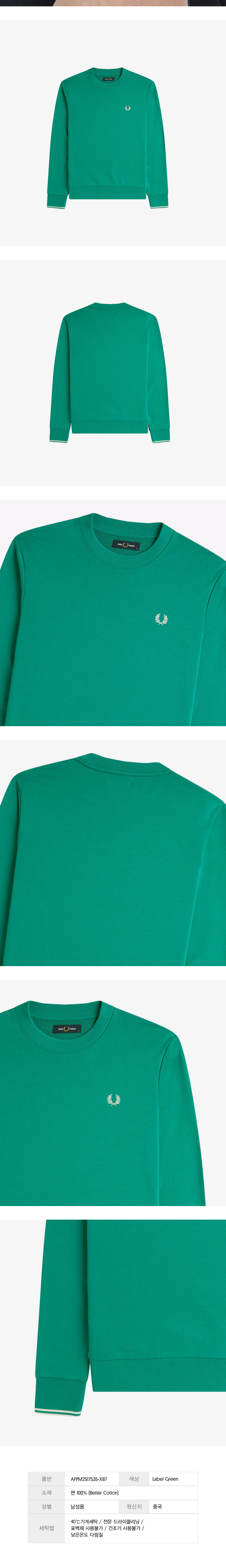 프레드페리 크루넥 스웻셔츠 라벨그린