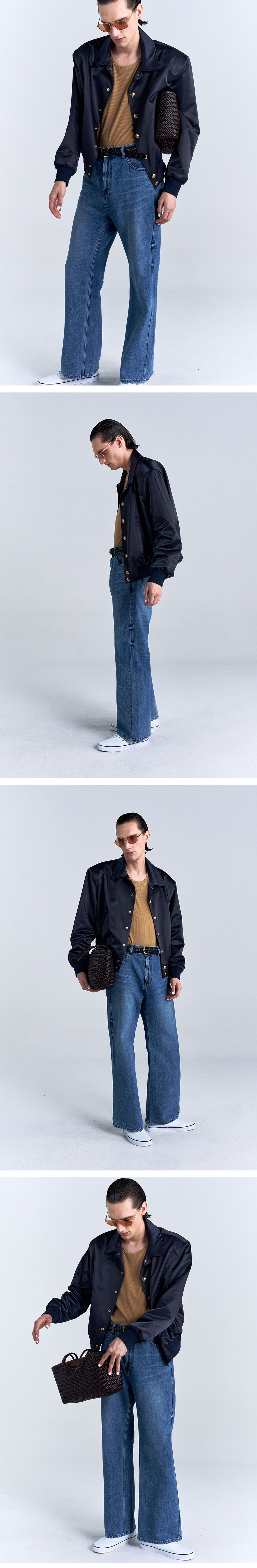 빈티지한 워싱이 더해진 플레어 데님 팬츠입니다. 편안한 착용감과 함께 다양한 스타일링에 어울리는 데일리 아이템입니다.