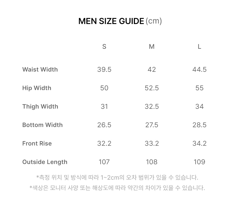| 허리단면 | 힙단면 | 밑위 | 허벅지단면 | 밑단단면 | 총기장 |