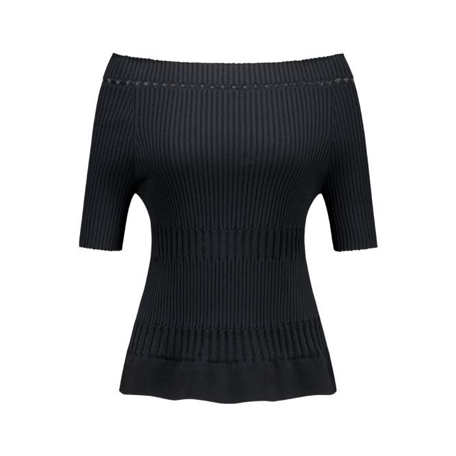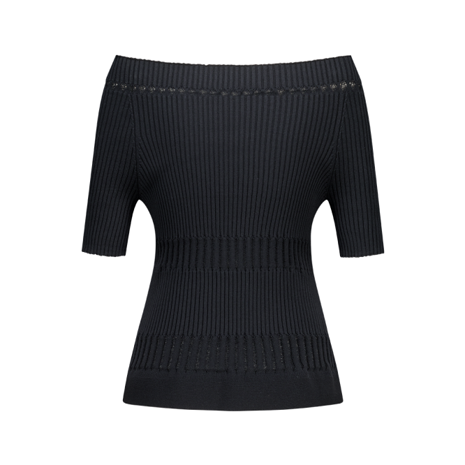 쥬키프 코튼 레이스 립 오프숄더 탑 블랙