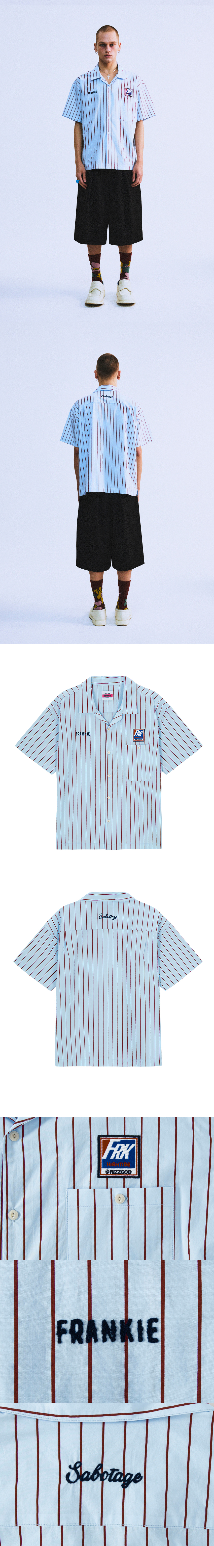 SIZE : M L M 어깨 56cm 가슴 59cm 소매 21cm 기장 69cm L 어깨 58cm 가슴 61.5cm 소매 22cm 기장 70cm 사이즈 측정은 재는 방법과 위치에 따라 1~3cm 오차가 발생할수 있음 Coisheam : 183cm 63kg Munira : 177cm 61kg 트럭 운전사들의 작업복에 영감받아 제작된 반팔 셔츠 입니다 은은한 바탕 컬러위 스트라이프 패턴이 배색된 원단 위 패치로 제작된 프랭키 아트웍과 체인 자수로 작업된 FRANKIE 를 양쪽에 배치하여 작업복 느낌을 더했으며 뒷면 중앙엔 SABOTAGE 를 체인 자수로 작업하였습니다 -혼용률- 면 100% / 바이오 워싱 -주의- 드라이 권장 옷을 뒤집어 미지근한 물에 세탁 표백제나 강력한 세제 사용 금지 건조기 사용 금지 자수 부분 다림질 금지 Made in KOREA