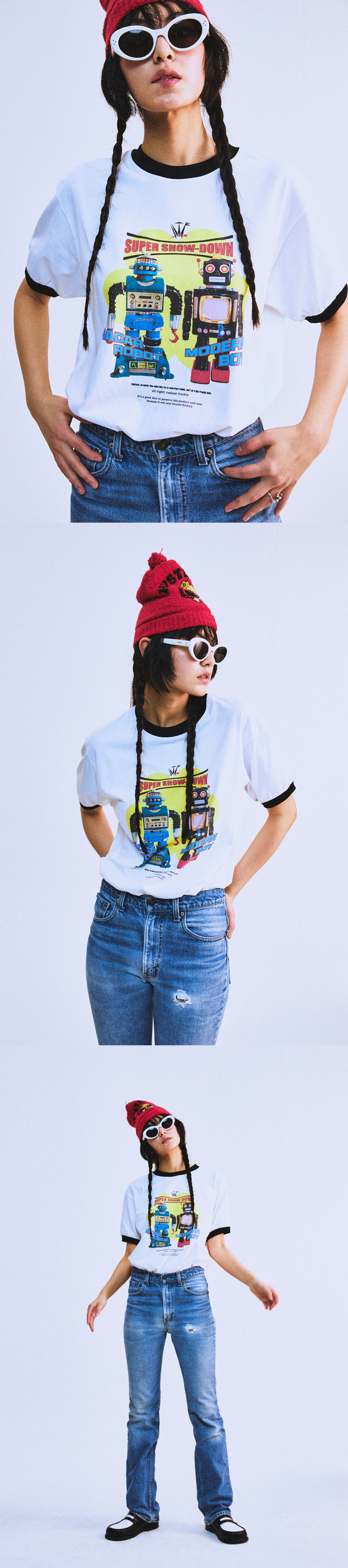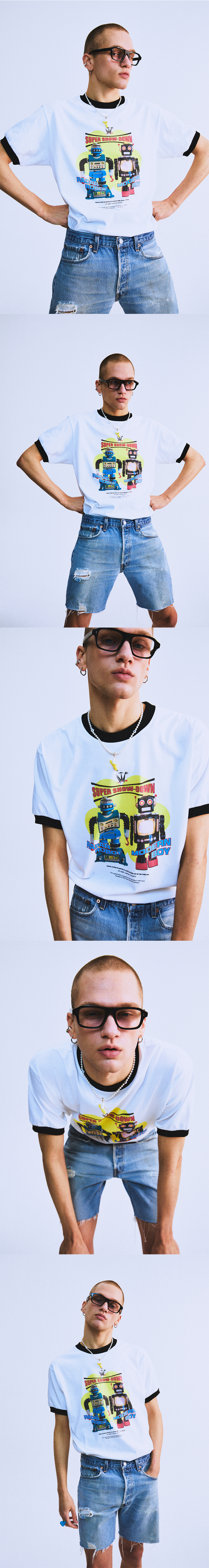 SIZE : FREE 어깨 48.5cm 가슴 52cm 소매 20.5cm 기장 65cm 재는 방법과 위치에 따라 1~3cm 오차가 발생할수 있음 Coisheam : 183cm 63kg Munira : 177cm 61kg 중앙에 디지털 전사로 표현한 그래픽은 레슬링 이라는주제 안에 로봇을 선수로 등장 시키는 아트웍을 완성 하였습니다 여성 분들도 착용하기 편한 사이즈 입니다 텐타 덤블과 바이오 워싱이 작업된 소재로 제작 하여 세탁후 줄어듬 현상을 최소화 하였습니다 어깨 부분 이음선은 체인스티치 기법으로 마감 되었습니다 텐타 덤블과 바이오 워싱이 작업된 소재로 제작 하여 세탁후 줄어듬 현상을 최소화 하였습니다 어깨 부분 이음선은 체인스티치 기법으로 마감 되었습니다 -혼용률- 20수 면 100% / 바이오 워싱 -주의- 드라이 권장 옷을 뒤집어 미지근한 물에 세탁 표백제나 강력한 세제 사용 금지 건조기 사용 금지 프린트 부분 다림질 금지 Made in KOREA