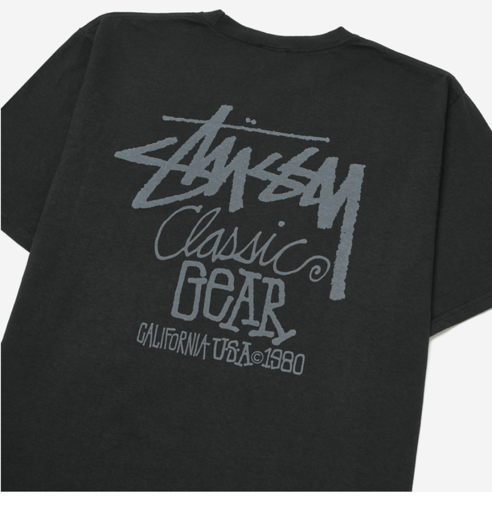 스투시 피그먼트 다이드 클래식 기어 티셔츠 블랙