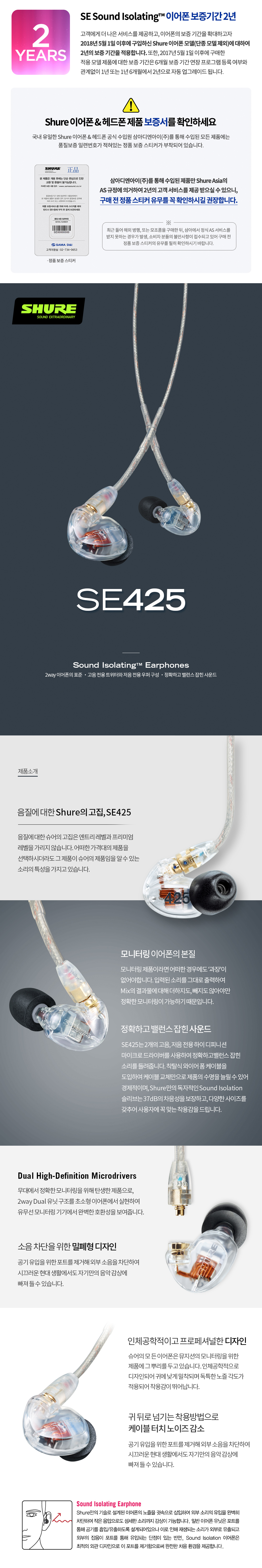 슈어 SE425 클리어 (삼아사운드 정식 발매 제품)