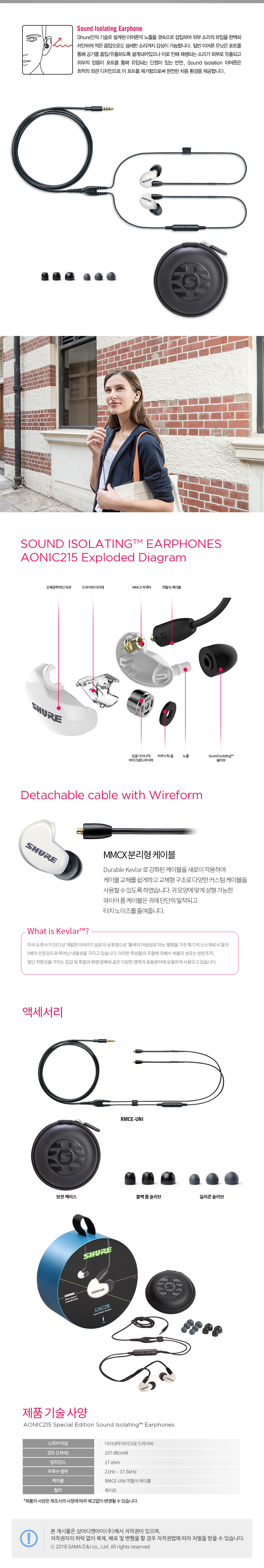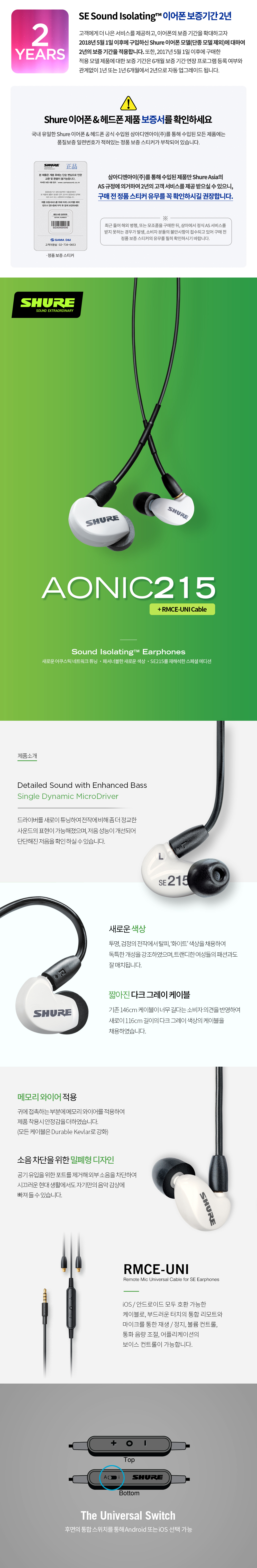 슈어 AONIC215 - UNI (SE215-UNI) 화이트 (삼아사운드 정식 발매 제품)