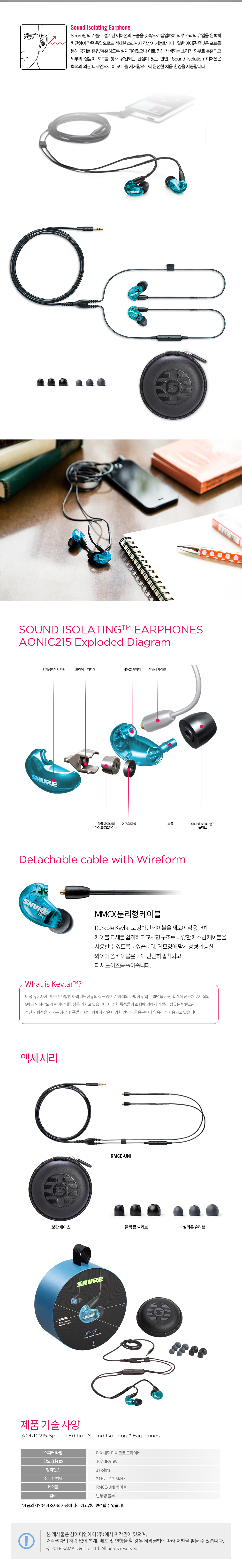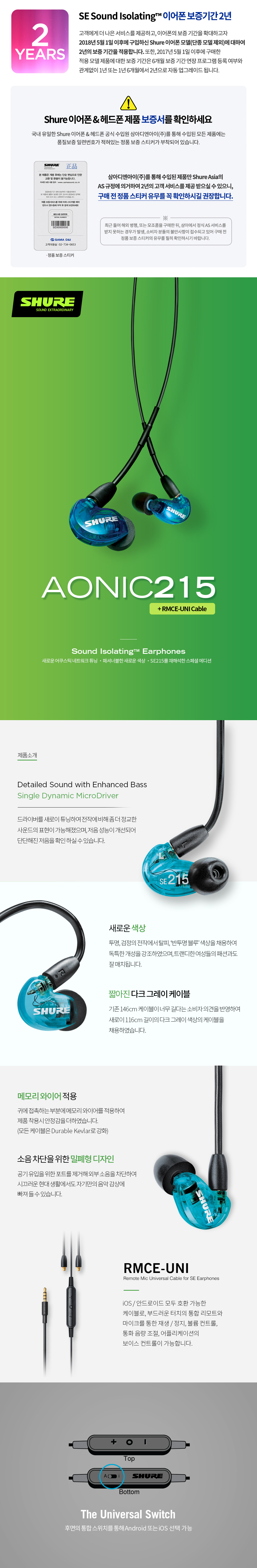 슈어 AONIC215 - UNI (SE215-UNI) 블루 (삼아사운드 정식 발매 제품)