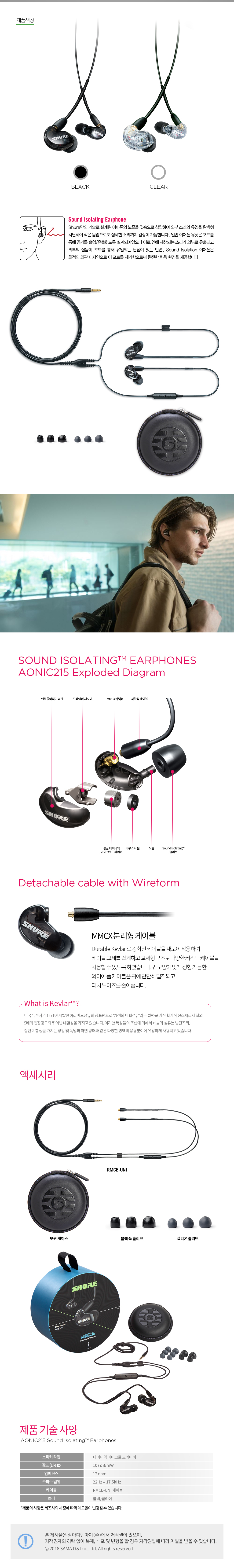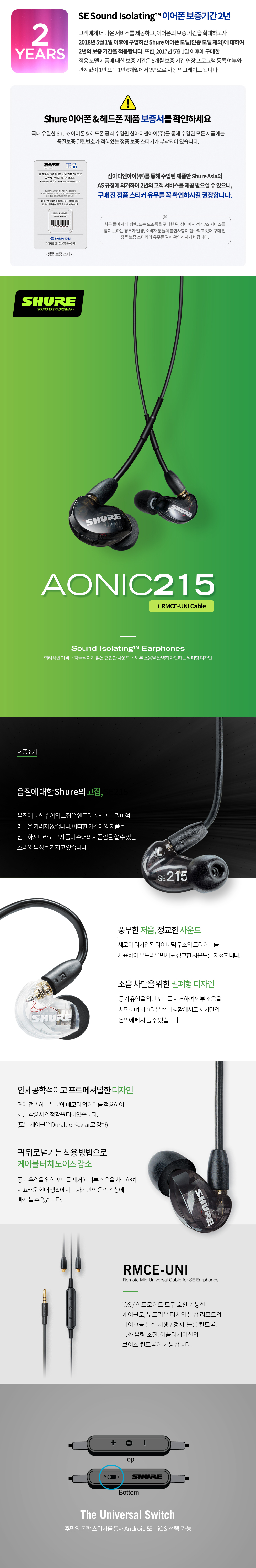 슈어 AONIC215 - UNI (SE215-UNI) 블랙 (삼아사운드 정식 발매 제품)