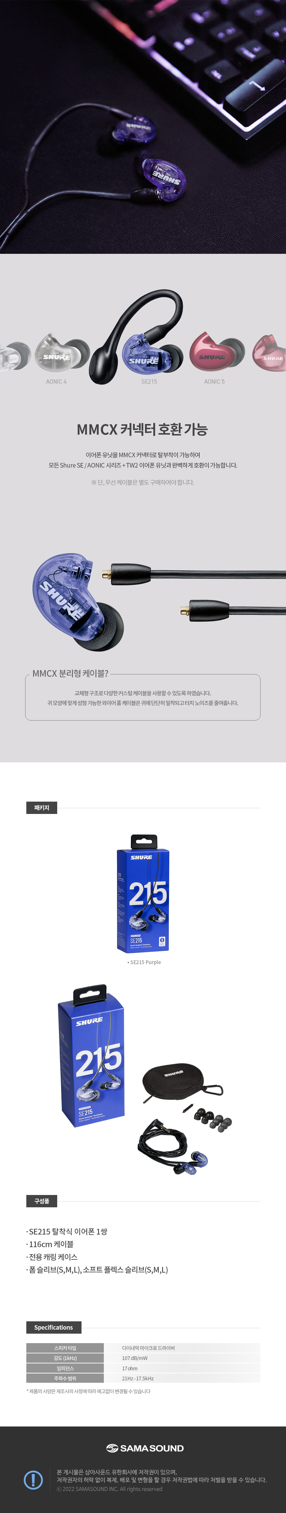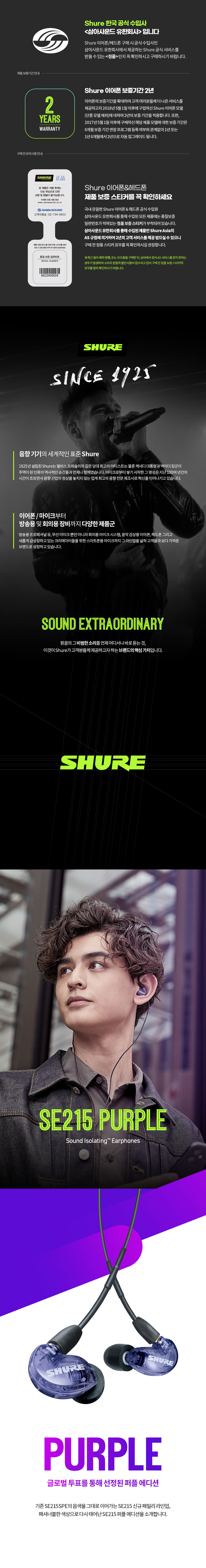 슈어 SE215SPE 퍼플 (삼아사운드 정식 발매 제품)