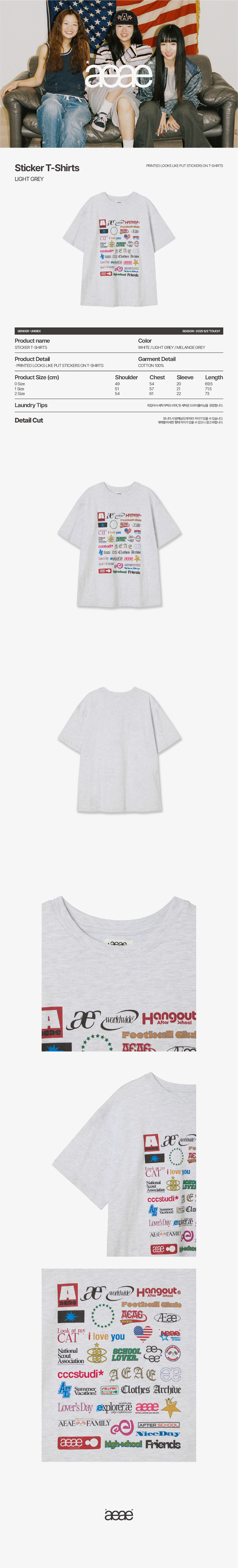 에이이에이이 스티커 티셔츠 라이트 그레이