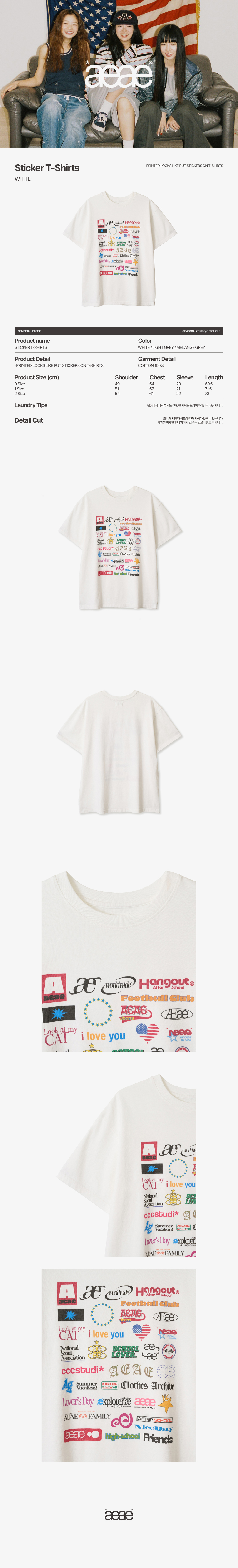 에이이에이이 스티커 티셔츠 화이트