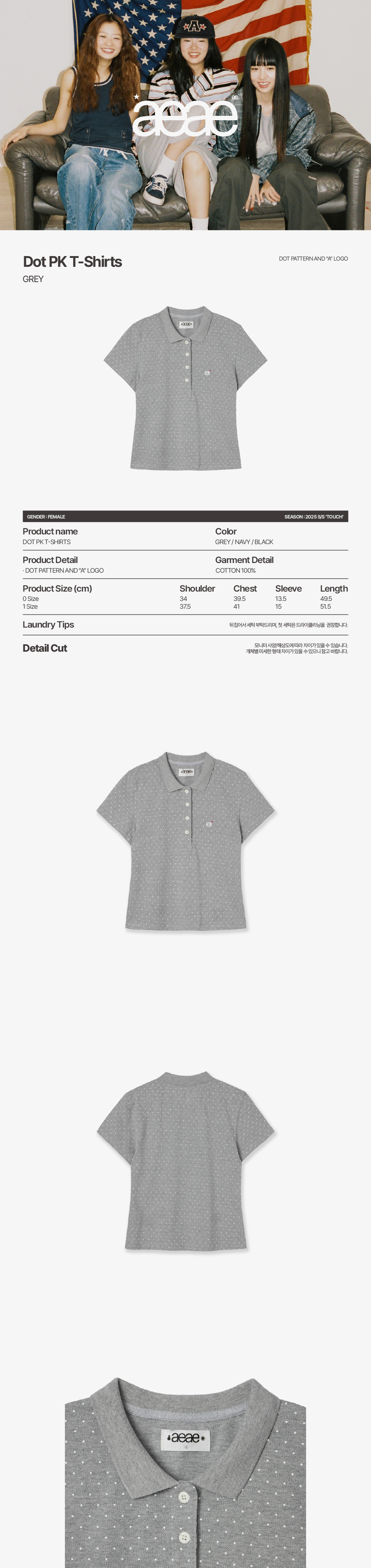 에이이에이이 도트 피케 티셔츠 그레이