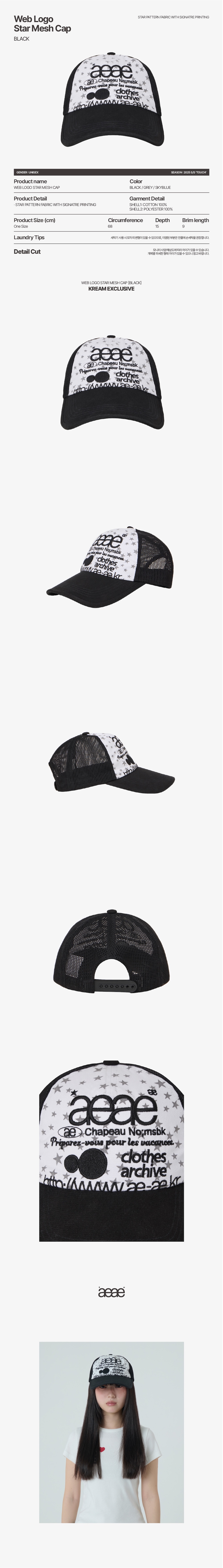 [KREAM 단독] AEAE Web Logo Star Mesh Cap Black
