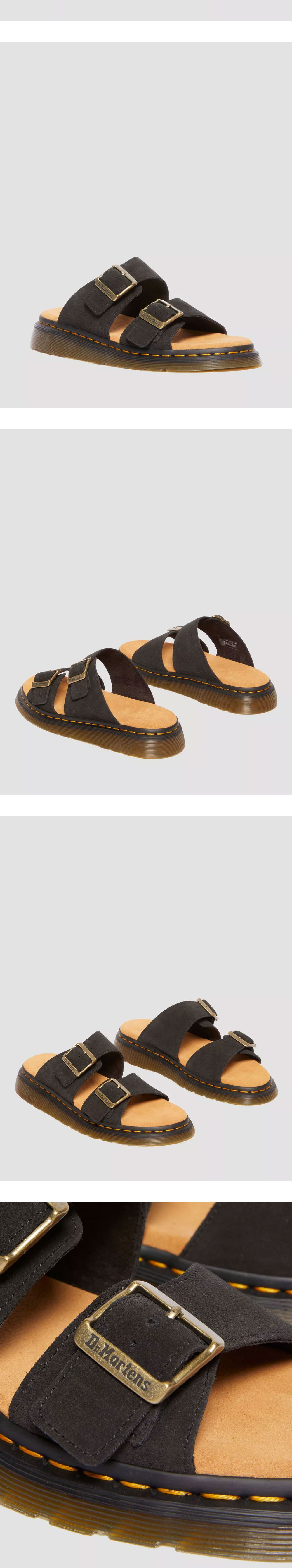어떤 룩에도 자연스럽게 녹아드는 닥터마틴의 조세프 스웨이드 슬라이드 샌들 블랙입니다. - 쉽게 착용 가능해 스타일링 용이 - 조절 가능한 버클 2개와 스웨이드로 덮인 폼 풋베드 - 여름철 착용하기 좋은 아이템 - 닥터마틴의 클래식한 밑창 디자인 - 옐로 웰트 스티칭