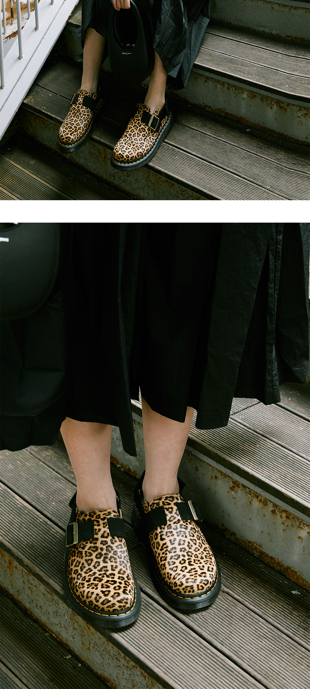 호피 패턴이 매력적인 닥터마틴의 조지 ll 스웨이드 뮬 라이트 탠 블랙입니다. - 부드러운 중간 무게의 누벅 가죽으로, 실키한 촉감을 제공 - 더 넓고 둥근 발가락 모양의 풋베드
