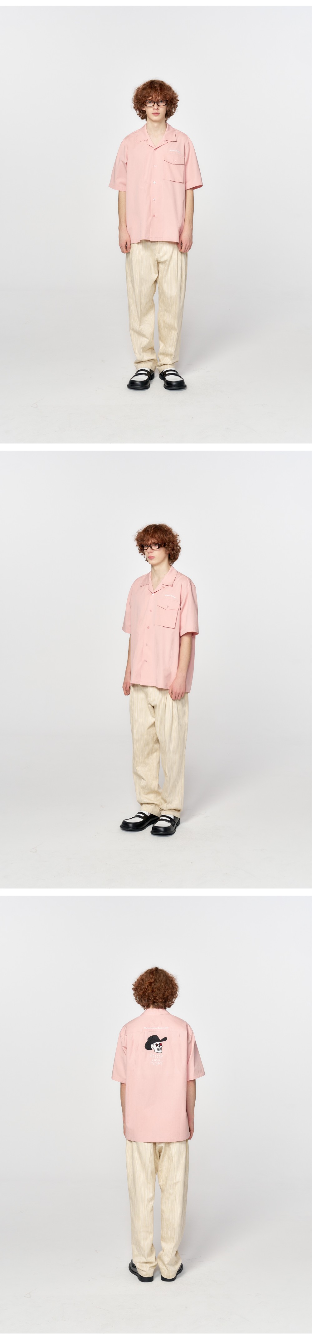홍우성 스컬 자수 오픈 카라 셔츠 핑크
