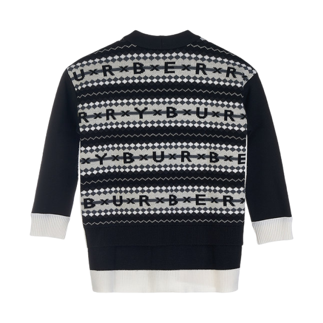 (Kids) Burberry Fair Isle Logo Wool Cardigan Black White