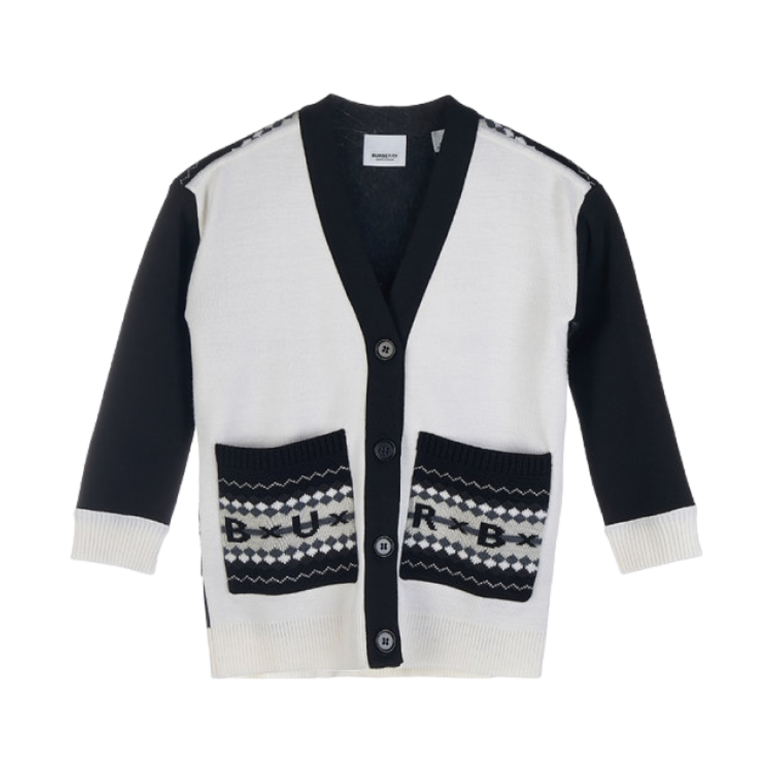 (키즈) 버버리 페어 아일 로고 울 가디건 블랙 화이트