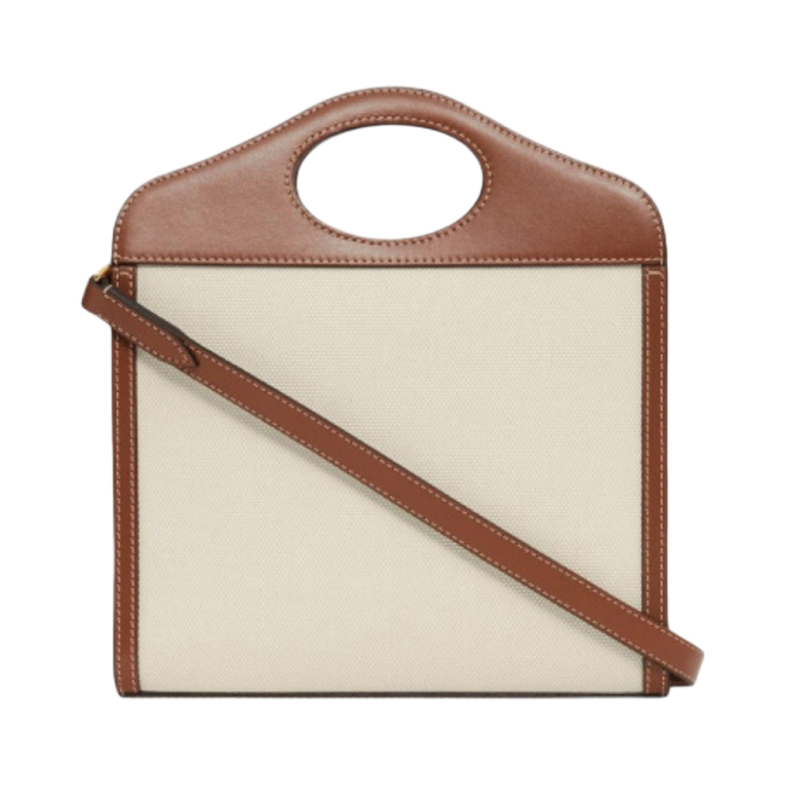 Burberry Mini Two-Tone Canvas and Leather Pocket Bag Natural Malt Brown