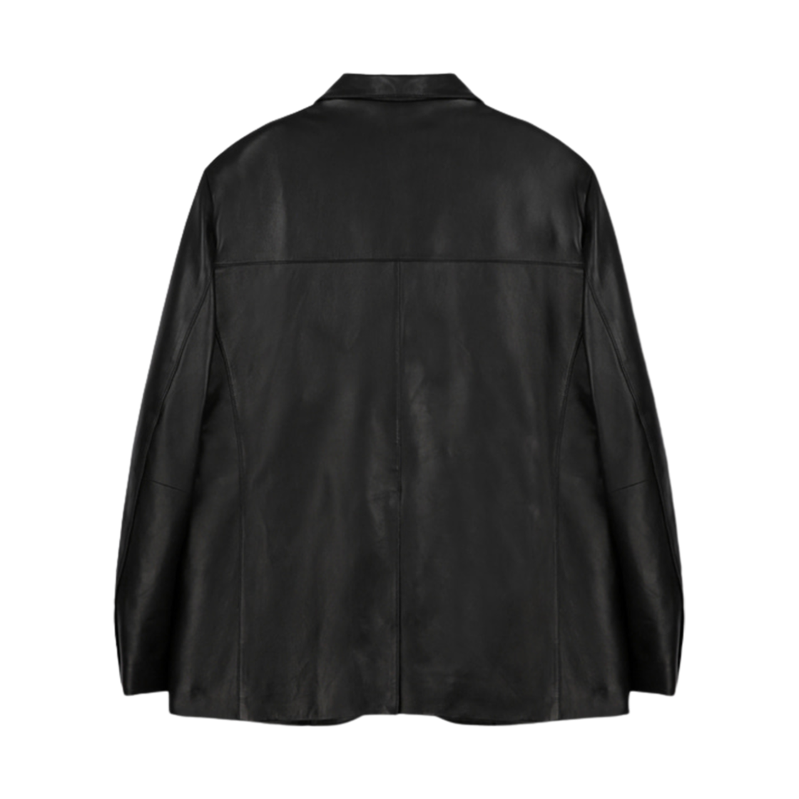 Tonywack Leather Single-Breasted Blazer Jacket Black