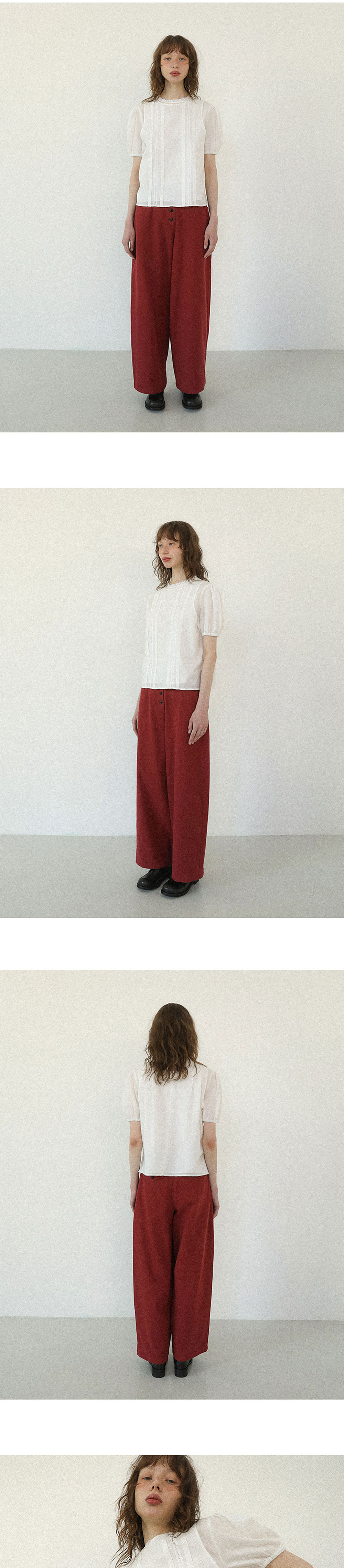- 커브드 실루엣이 돋보이는 로우웨이스트 코튼팬츠 - 전면부 단추 포인트 - 여유로운 실루엣으로 편안한 착용감