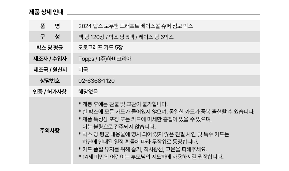 2024 탑스 보우맨 드래프트 베이스볼 슈퍼 점보 박스