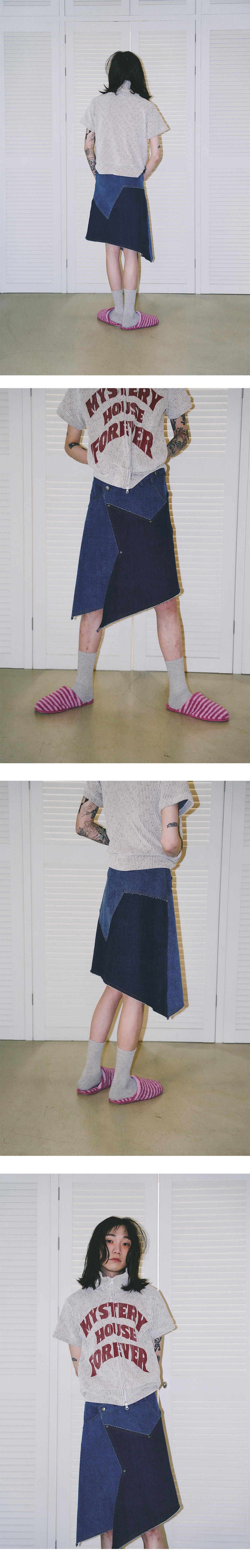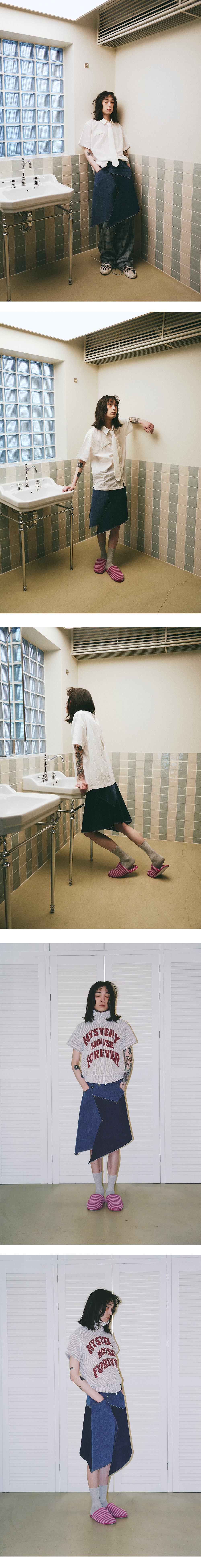 프라블럼올웨이즈 믹스 데님 스타 랩 스커트