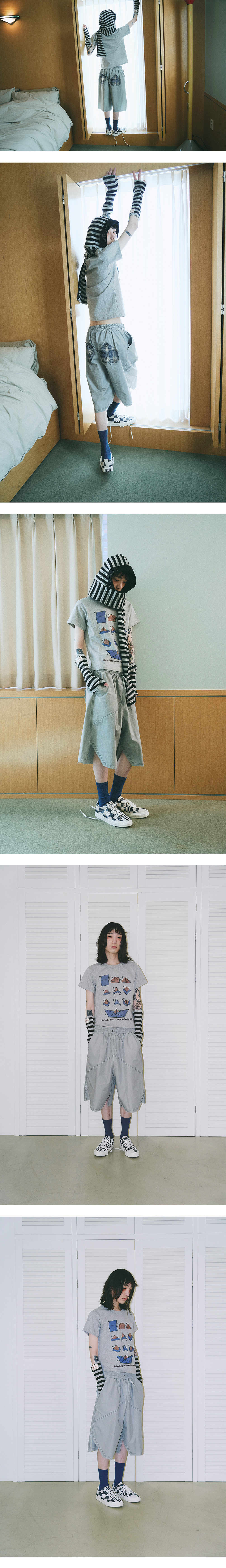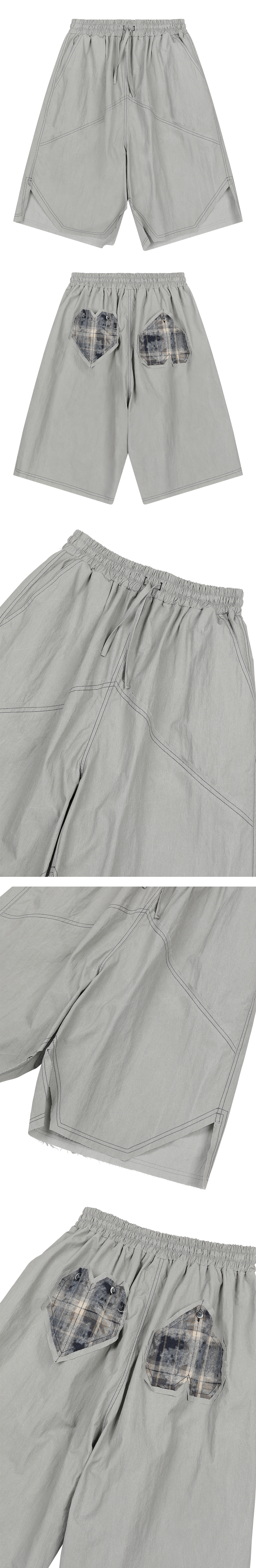 프라블럼올웨이즈 오프셋 하트 패치 빈티지 체크 쇼츠 그레이