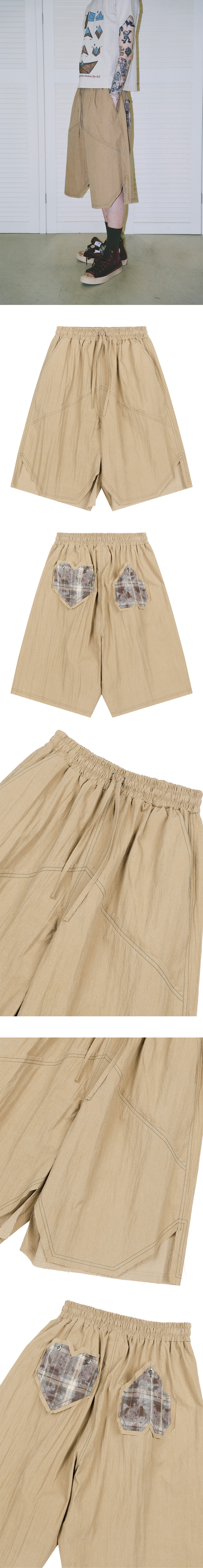 Problemallways Offset Heart-Patch Vintage Shorts Beige