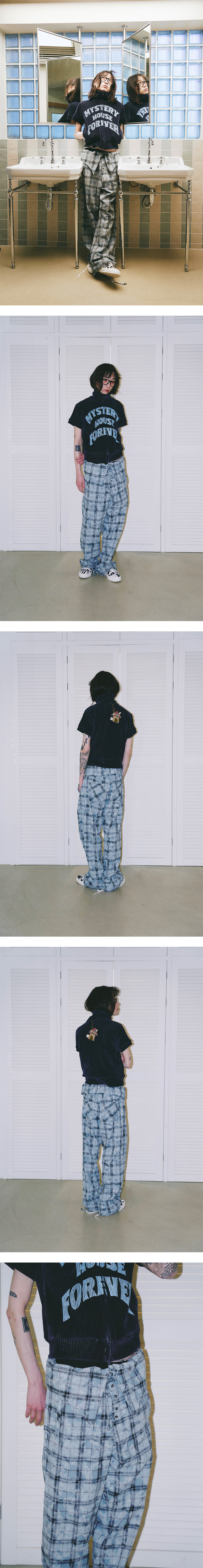 프라블럼올웨이즈 러스틱 체크 셔츠 팬츠 스카이 블루