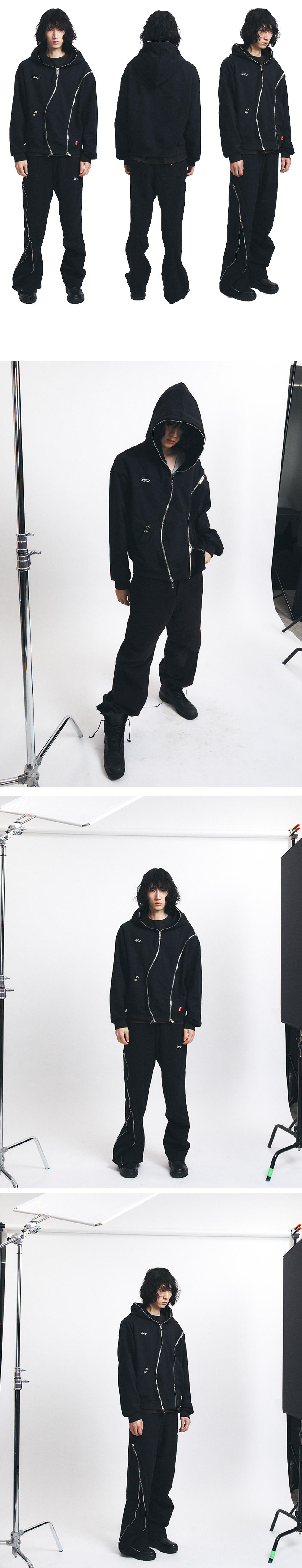 -웨이브 지퍼라인 -더블 헤드 파코헤드지퍼 -PACOSPLY 라이터캡 금속장식 -필드 로고 자수 -크롭 오버사이즈 핏 -메탈 니켈 리벳