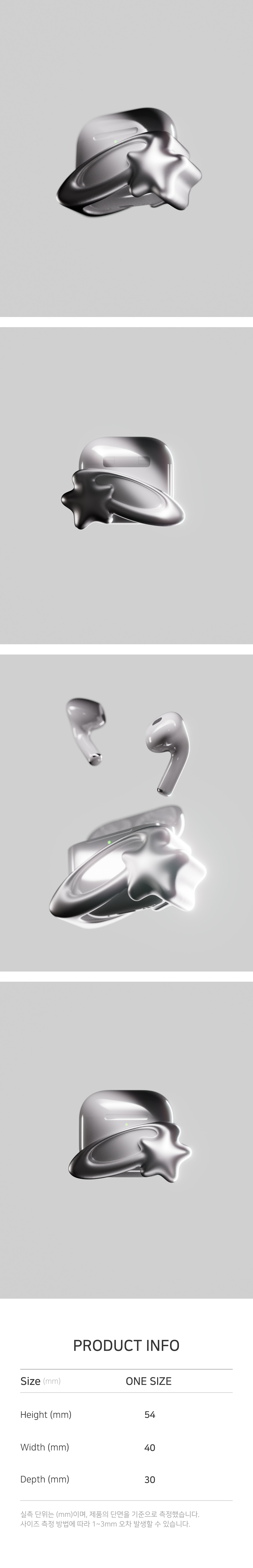 Season .ERA Material Plastic Size Airpods 4 Detail 시그니처 패키지 / Signature Package Y2K 스타일의 스타 쉐입 / Star Shapes in Y2K Style * 제작 공정 상 내부 사각지대에 미도색된 부분이 있을 수 있으며, 이는 교환, 환불의 대상이 아닙니다. * There may be unpainted parts in the inner blind spot during the manufacturing process, which are not subject to exchange or refund.