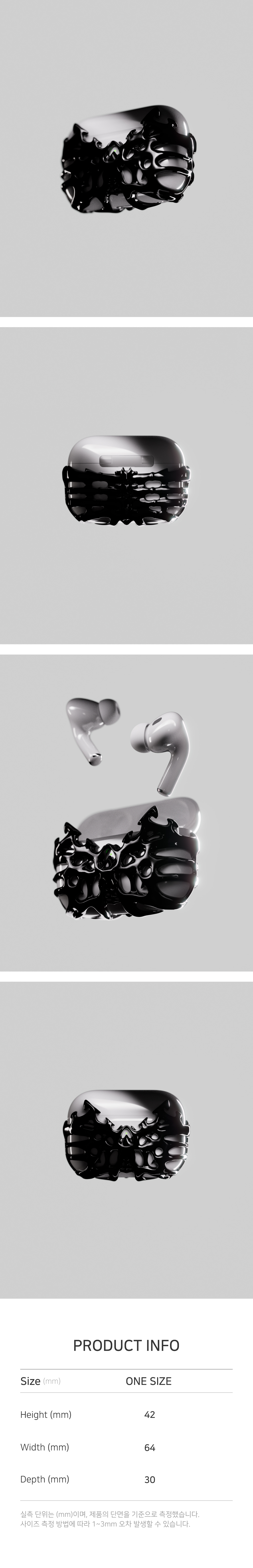 Season .ERA (chromatic) Material Plastic Size Airpods Pro 1 & 2 Detail 시그니처 비닐 패키지 / Signature Vinyl Package 디테일한 골격 구조 / Detailed Skeletal Structure * 제작 공정 상 내부 사각지대에 미도색된 부분이 있을 수 있으며, 이는 교환, 환불의 대상이 아닙니다. * There may be unpainted parts in the inner blind spot during the manufacturing process, which are not subject to exchange or refund.