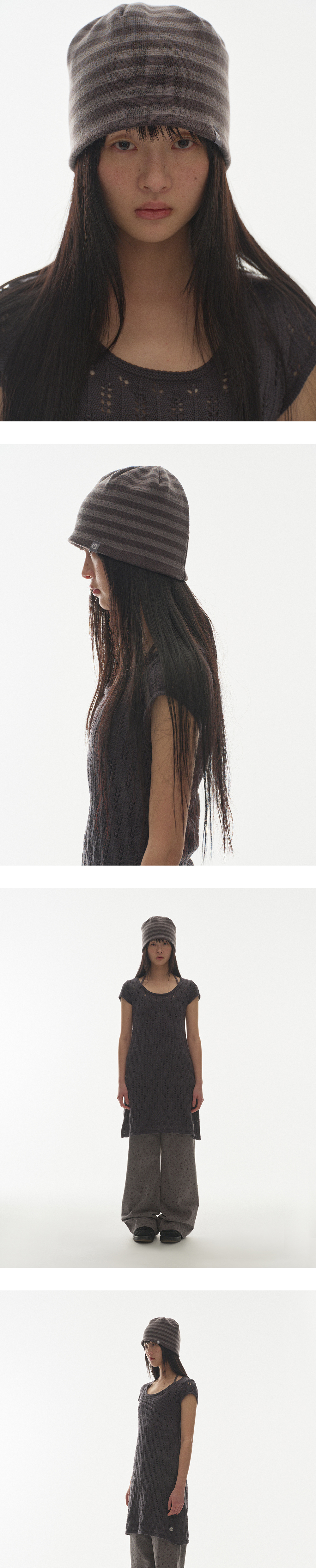 코이세이오 듀얼 스트라이프 비니 퍼플 그레이